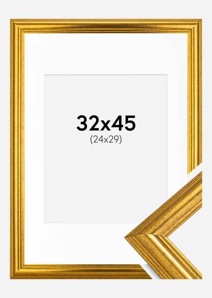 Moldura Västkusten Dourado 32x45 cm - Passe-partout Branco 25x30 cm