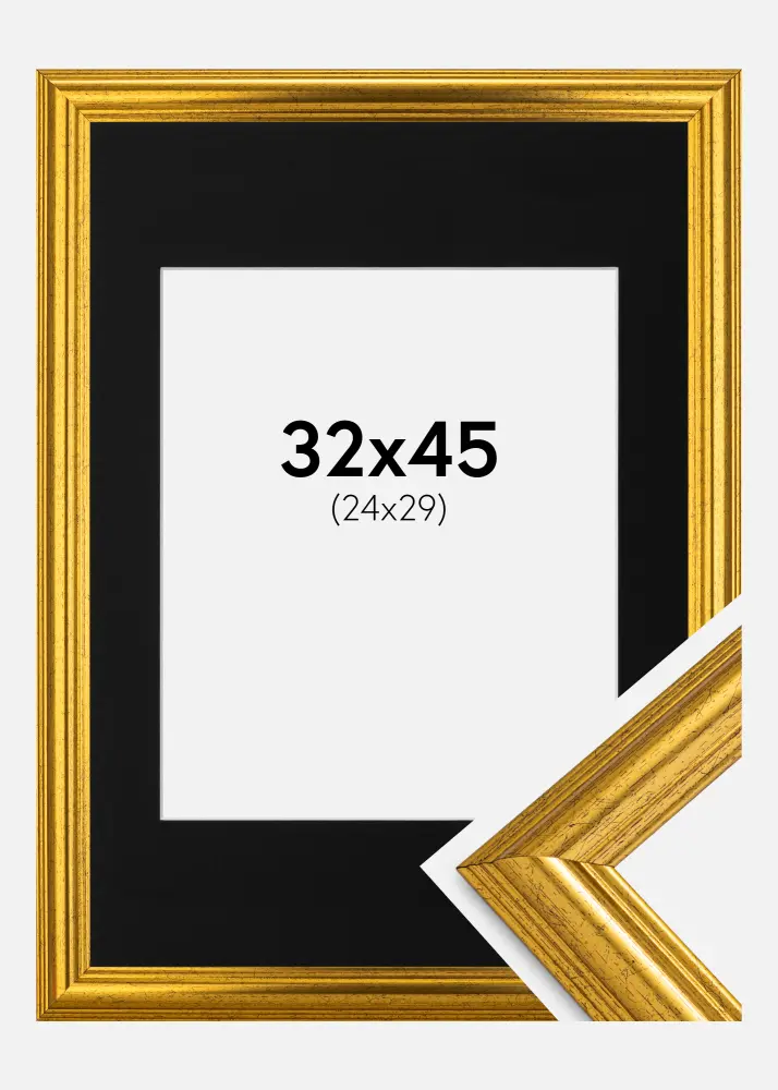 Moldura Västkusten Dourado 32x45 cm - Passe-partout Preto 25x30 cm