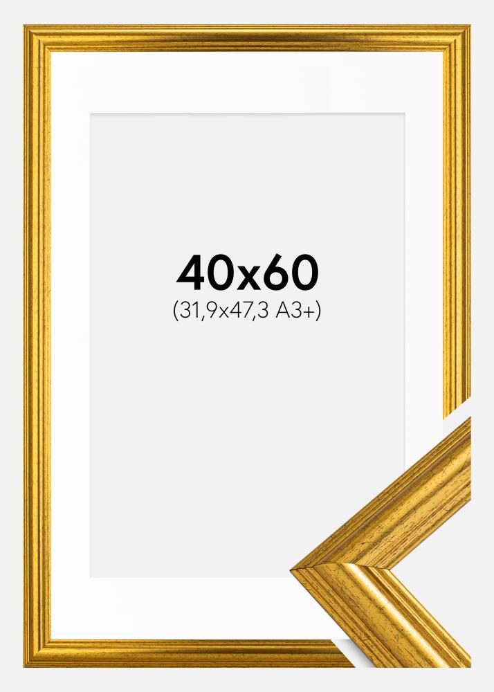 Moldura Västkusten Dourado 40x60 cm - Passe-partout Branco 32,9x48,3 cm (A3+)