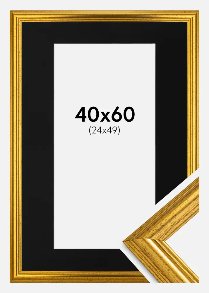 Moldura Västkusten Dourado 40x60 cm - Passe-partout Preto 25x50 cm