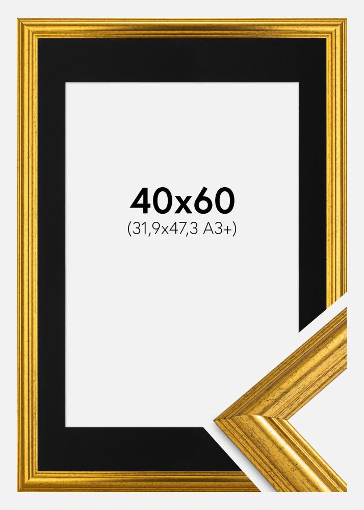 Moldura Västkusten Dourado 40x60 cm - Passe-partout Preto 32,9x48,3 cm (A3+)