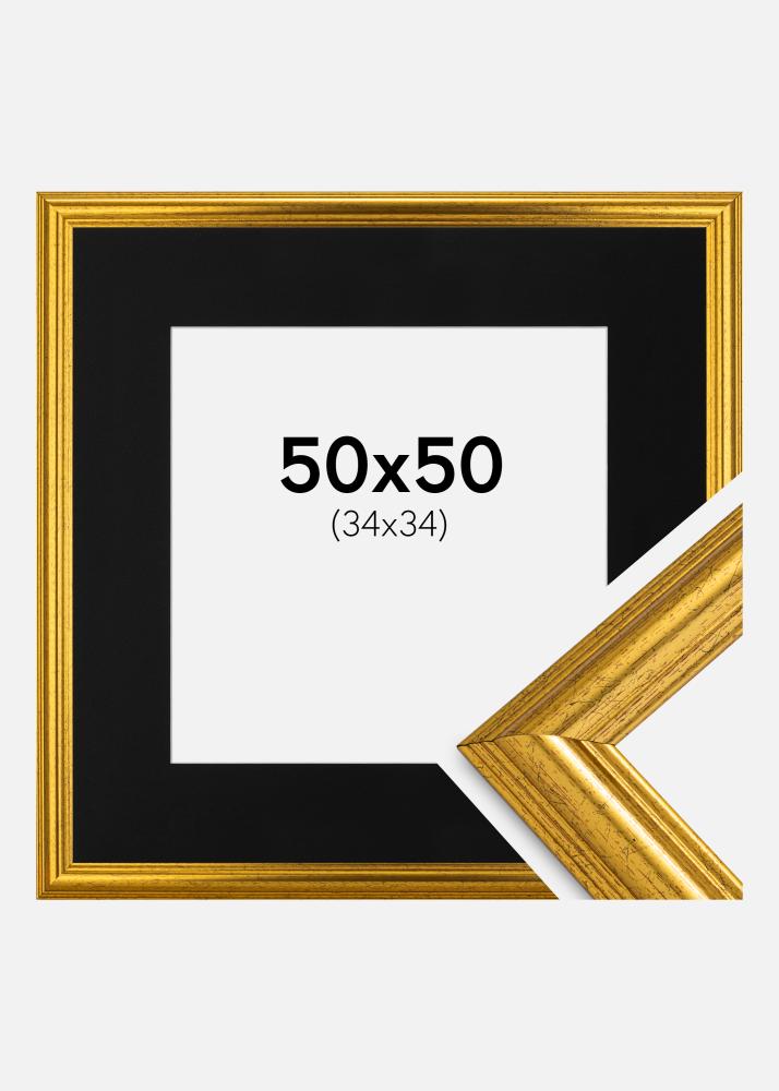 Moldura Västkusten Dourado 50x50 cm - Passe-partout Preto 35x35 cm