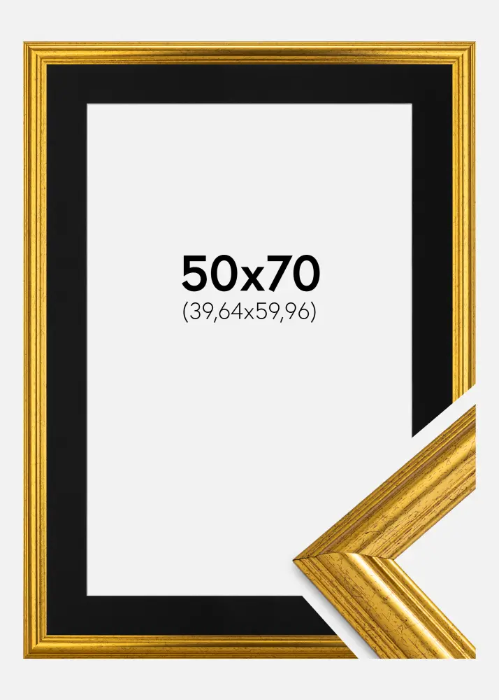 Moldura Västkusten Dourado 50x70 cm - Passe-partout Preto 16x24 inches