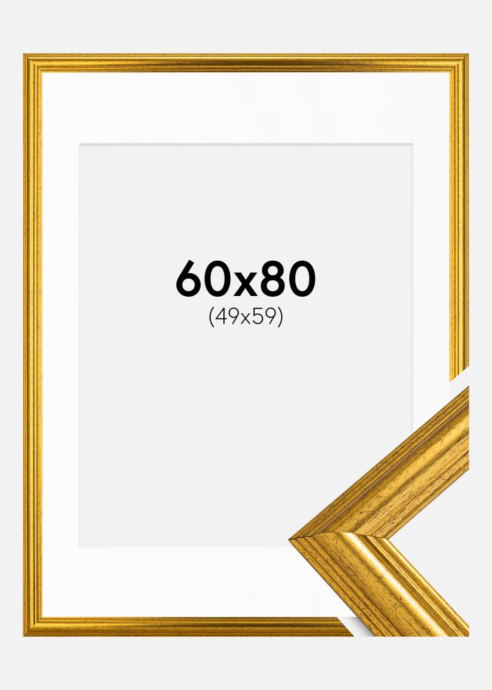 Moldura Västkusten Dourado 60x80 cm - Passe-partout Branco 50x60 cm