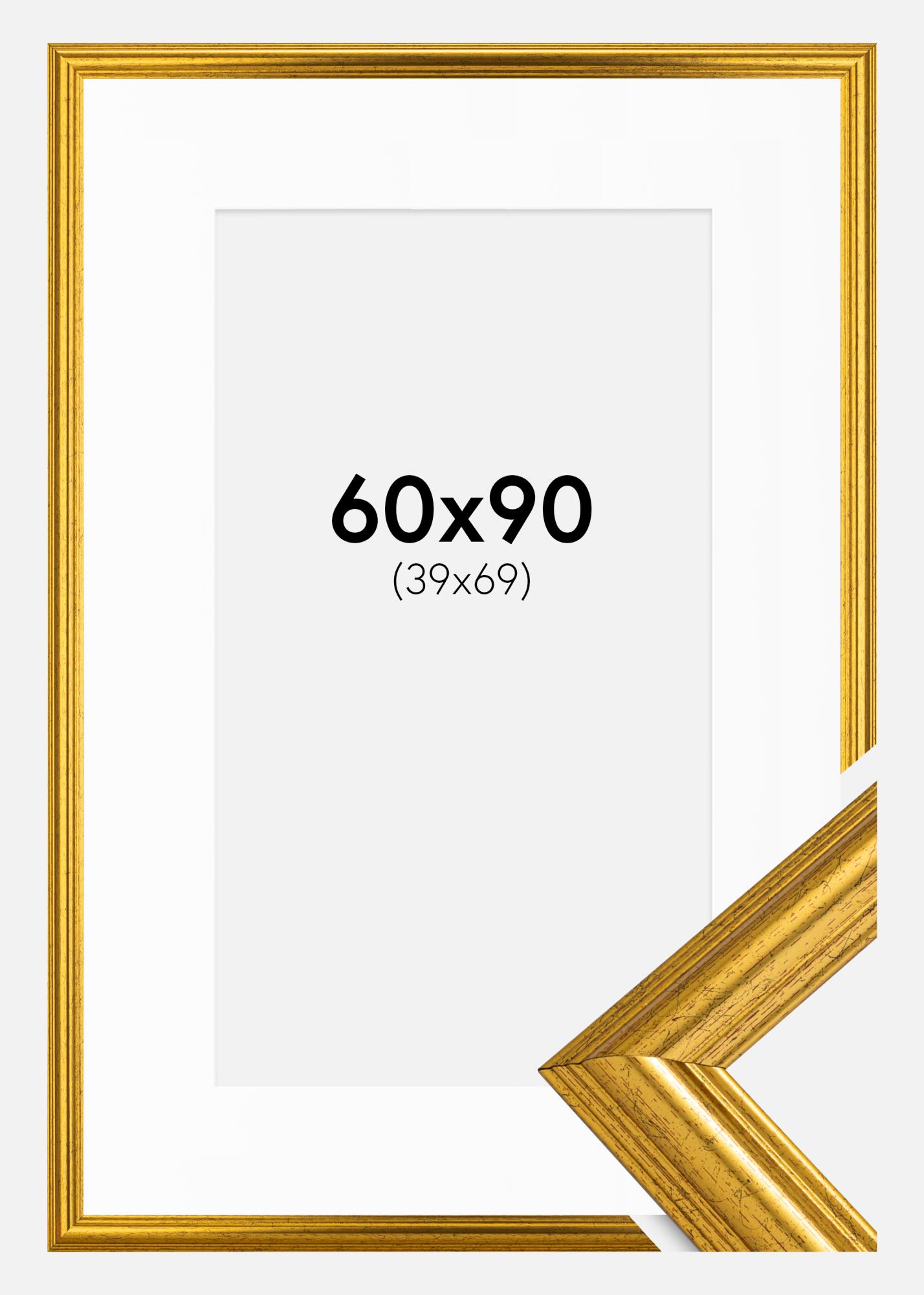 Moldura Västkusten Dourado 60x90 cm - Passe-partout Branco 40x70 cm
