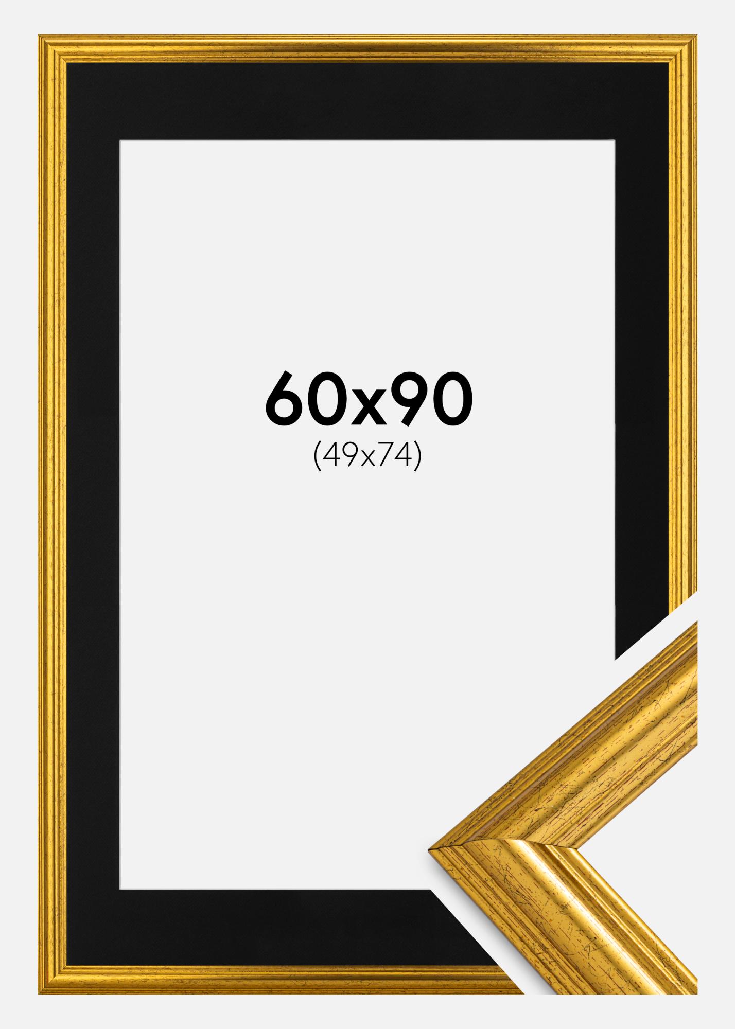 Moldura Västkusten Dourado 60x90 cm - Passe-partout Preto 50x75 cm