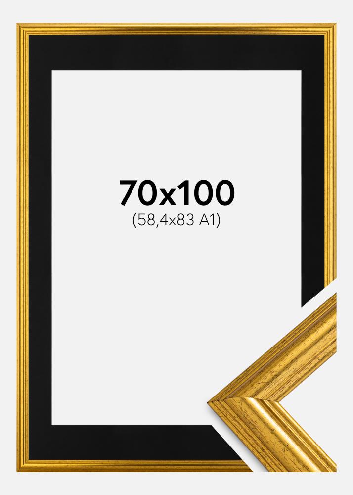 Moldura Västkusten Dourado 70x100 cm - Passe-partout Preto 59,4x84 cm (A1)