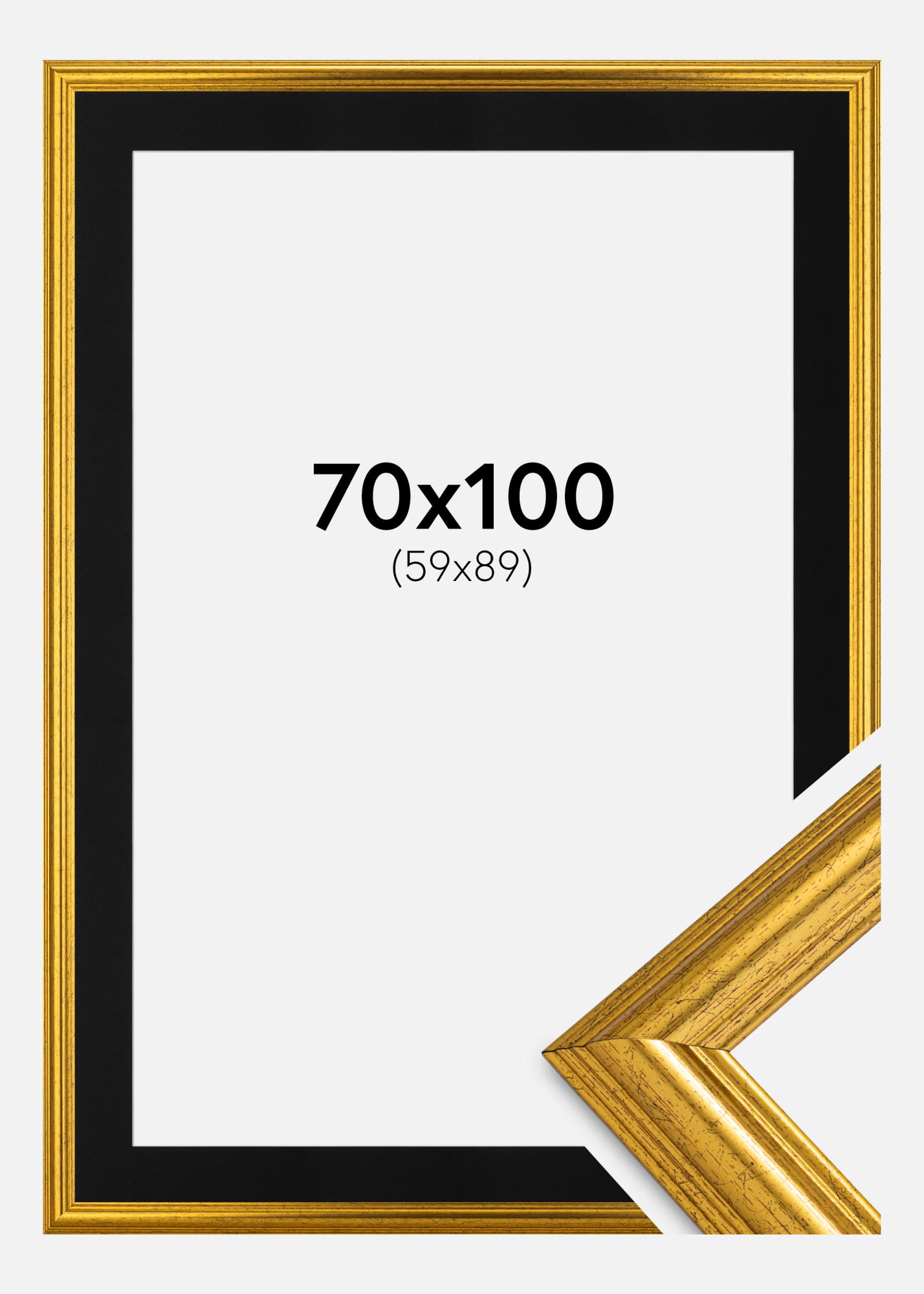Moldura Västkusten Dourado 70x100 cm - Passe-partout Preto 60x90 cm