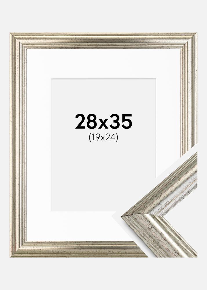 Moldura Västkusten Prateado 28x35 cm - Passe-partout Branco 20x25 cm