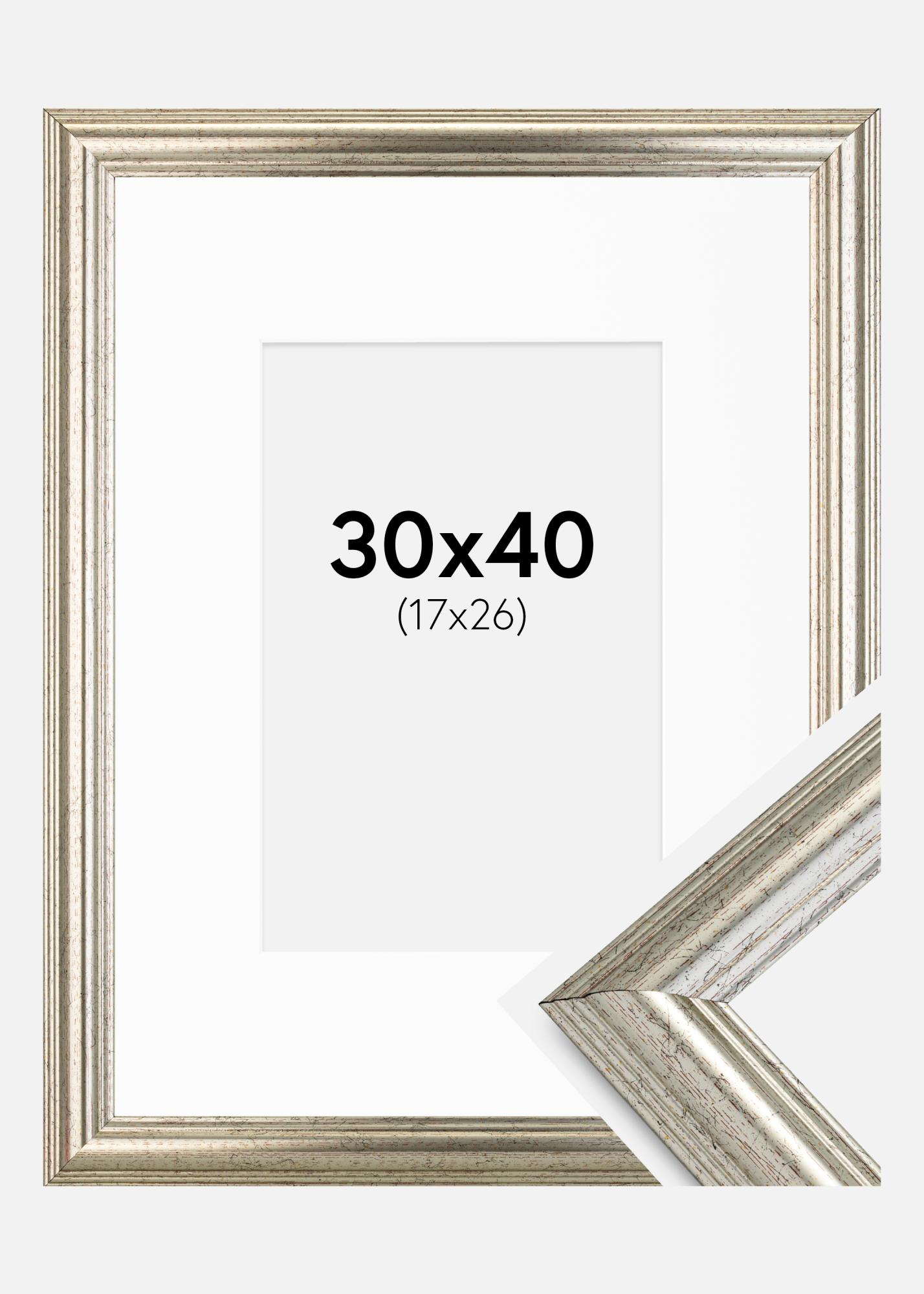 Moldura Västkusten Prateado 30x40 cm - Passe-partout Branco 18x27 cm