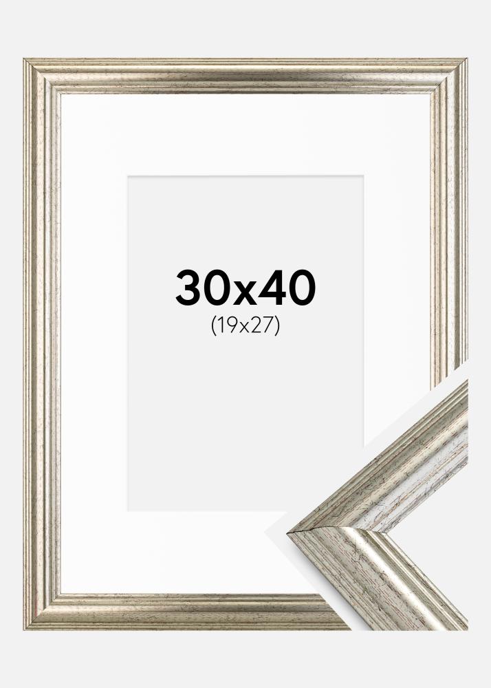 Moldura Västkusten Prateado 30x40 cm - Passe-partout Branco 20x28 cm