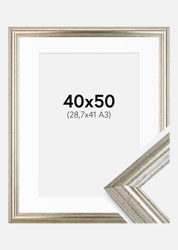 Moldura Västkusten Prateado 40x50 cm - Passe-partout Branco 29,7x42 cm (A3)