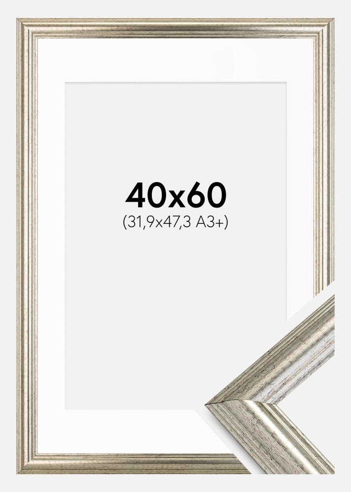 Moldura Västkusten Prateado 40x60 cm - Passe-partout Branco 32,9x48,3 cm (A3+)