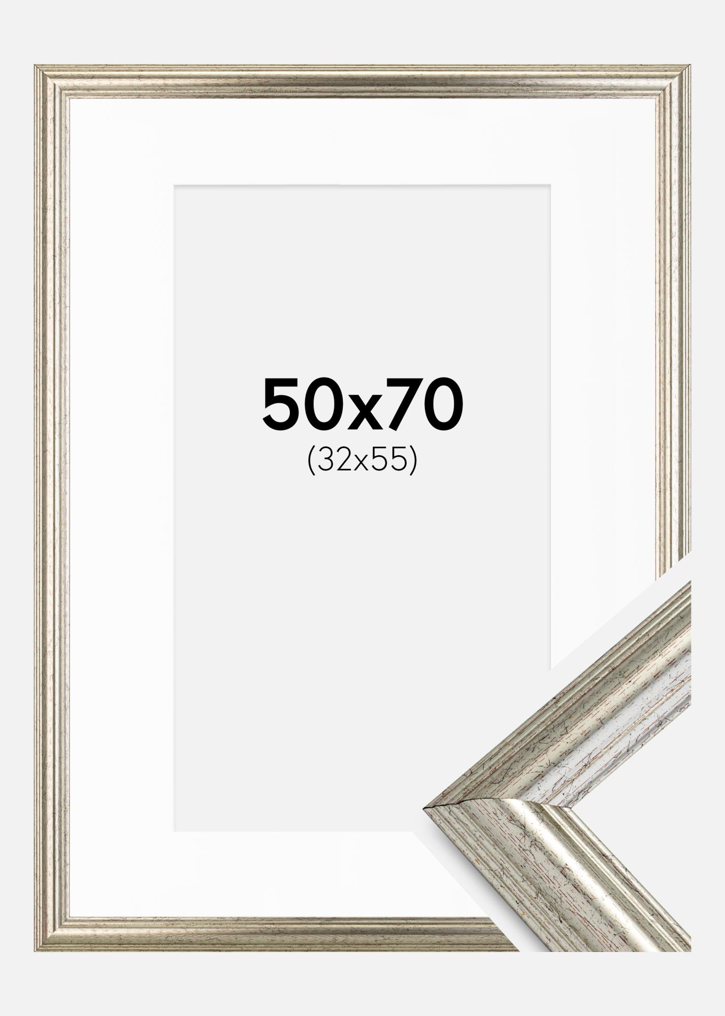 Moldura Västkusten Prateado 50x70 cm - Passe-partout Branco 33x56 cm