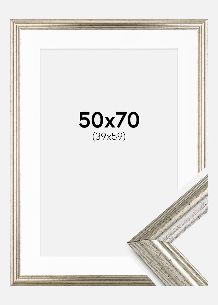 Moldura Västkusten Prateado 50x70 cm - Passe-partout Branco 40x60 cm