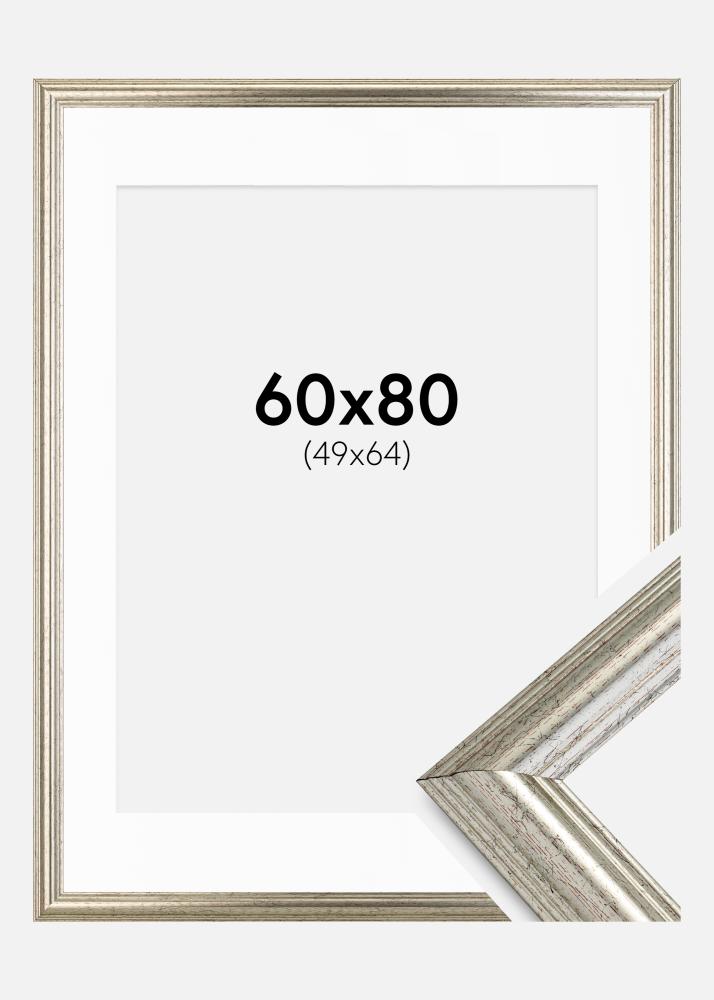 Moldura Västkusten Prateado 60x80 cm - Passe-partout Branco 50x65 cm