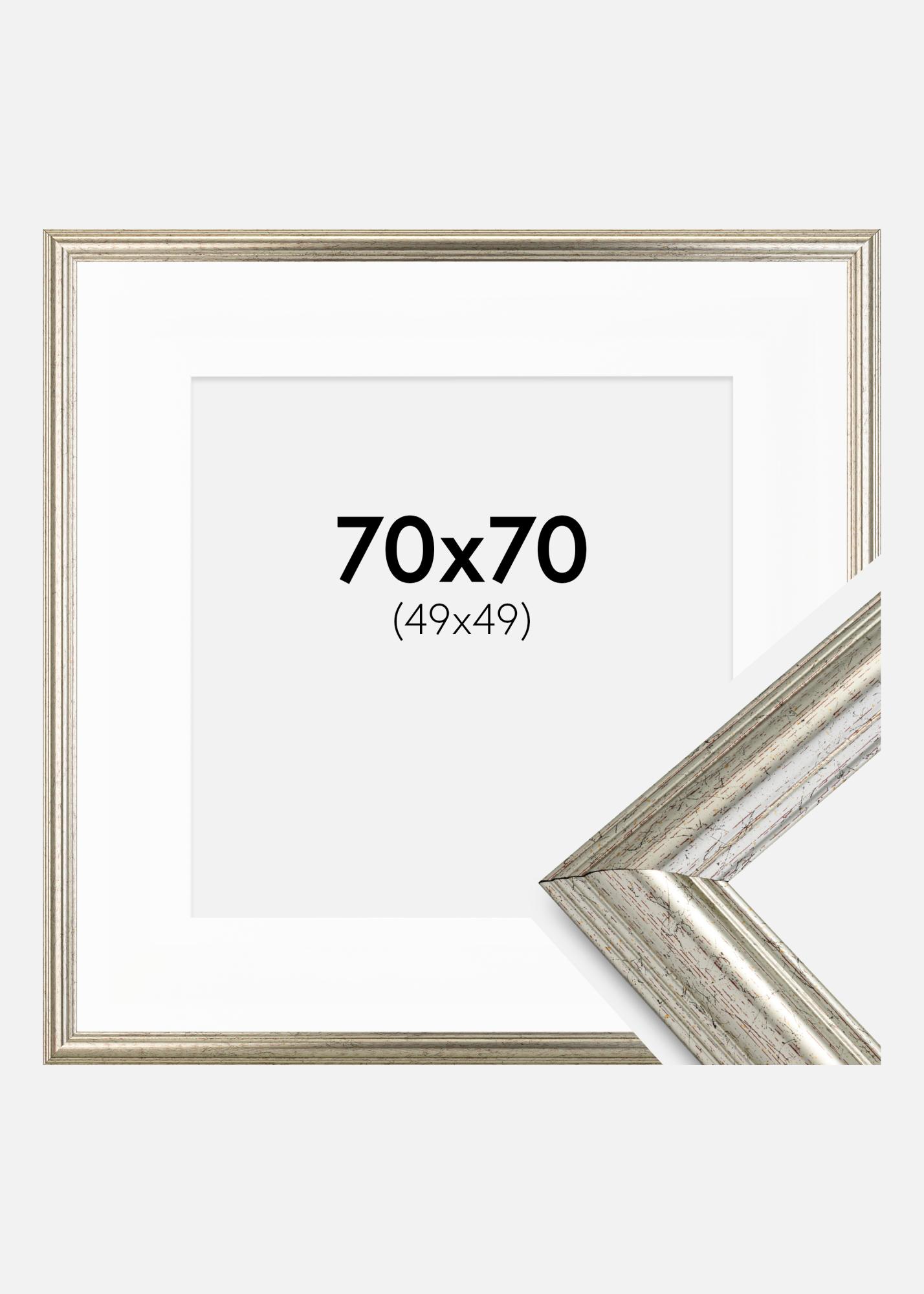 Moldura Västkusten Prateado 70x70 cm - Passe-partout Branco 60x60 cm
