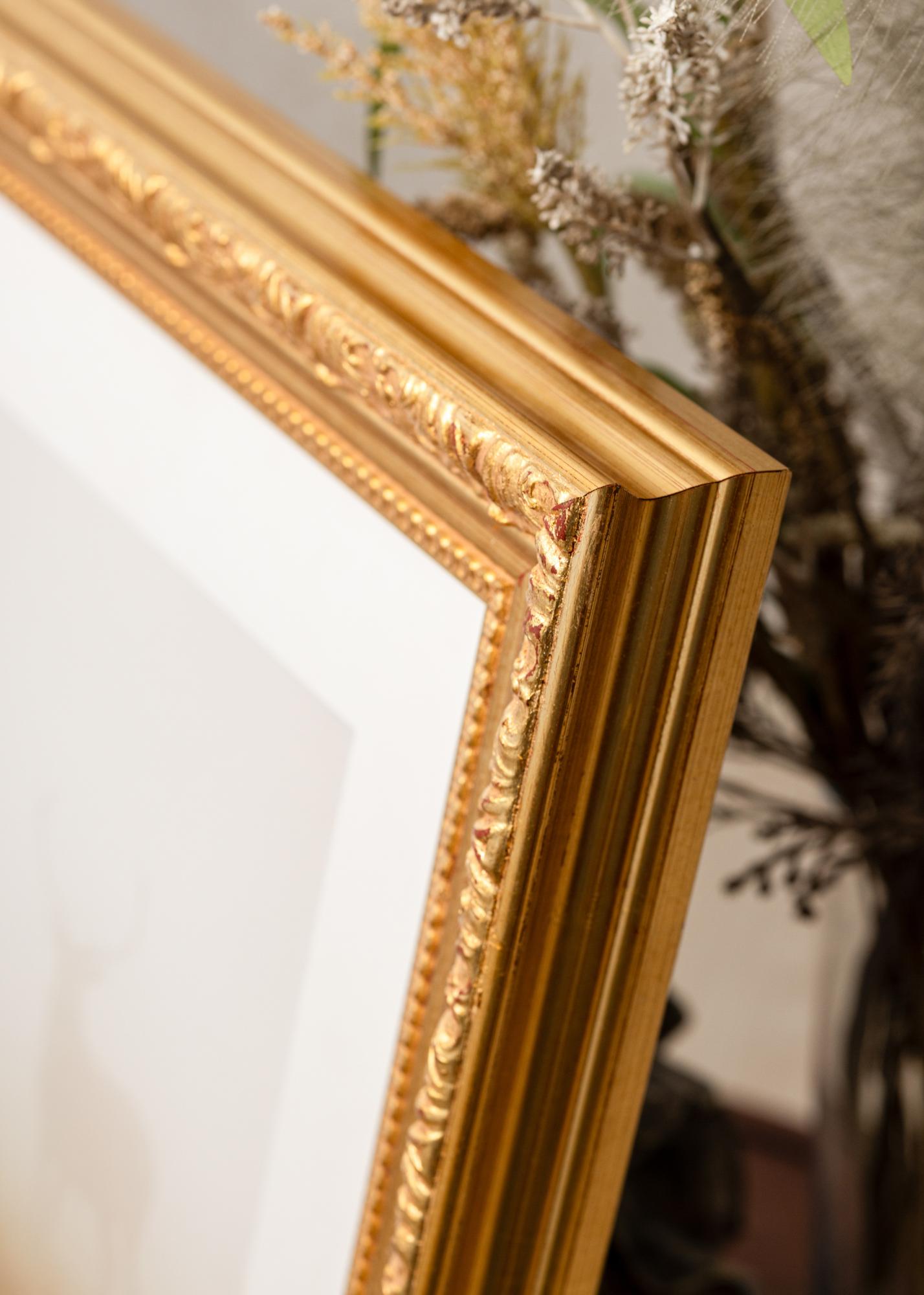 A Moldura Vesta Ouro é a solução perfeita para quem procura uma moldura elegante e intemporal para as suas fotos favoritas. Com a sua cor dourada clássica e ornamentos detalhados, esta moldura dá uma sensação de luxo e tradição a qualquer ambiente. O acabamento antigo, junto com toques sutis de vermelho, cria uma atmosfera quente e acolhedora que complementa tanto estilos de decoração modernos quanto clássicos.