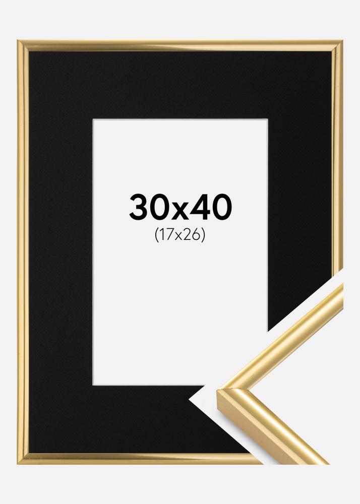 Moldura Victoria Dourado 30x40 cm - Passe-partout Preto 18x27 cm