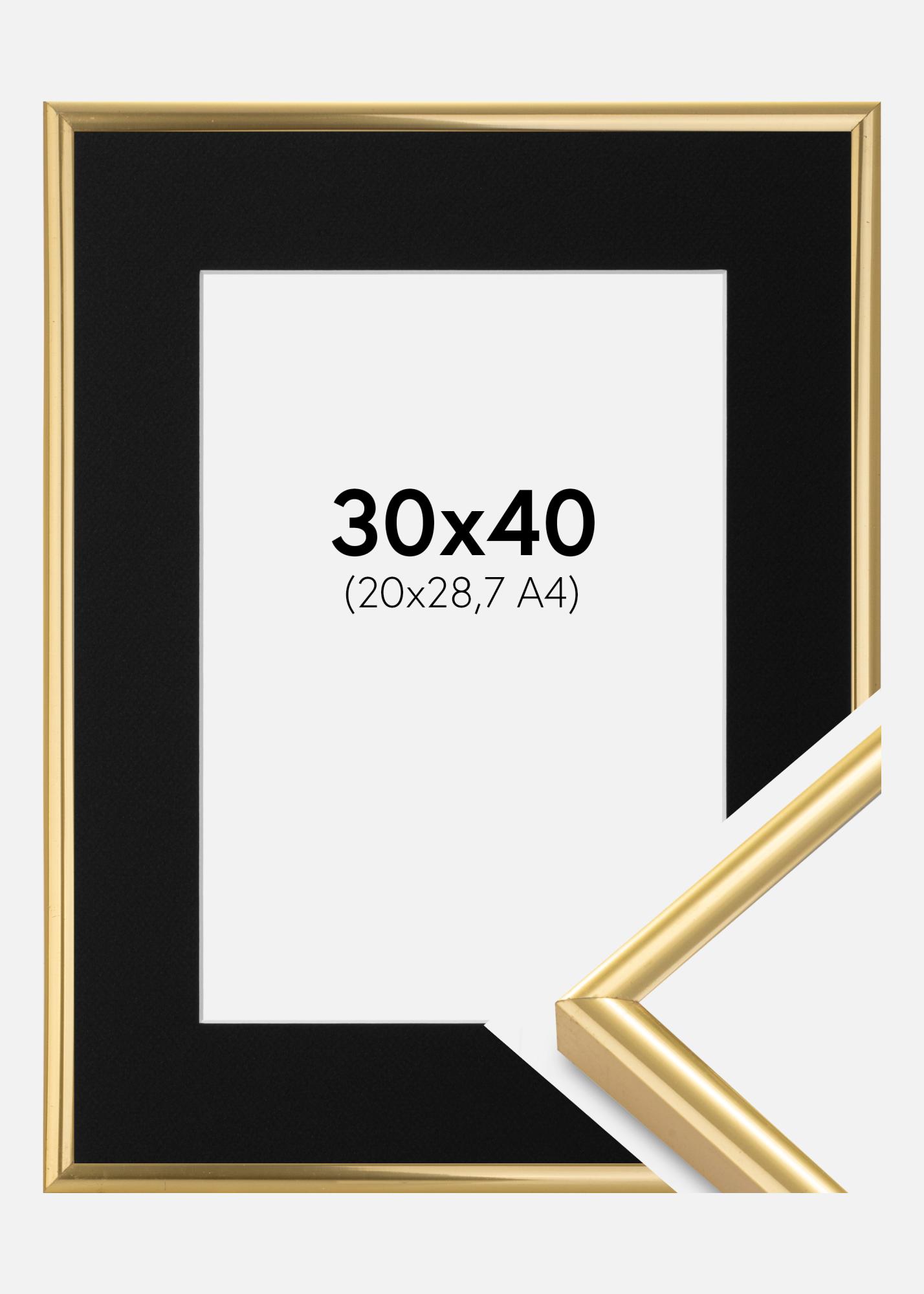 Moldura Victoria Dourado 30x40 cm - Passe-partout Preto 21x29,7 cm (A4)