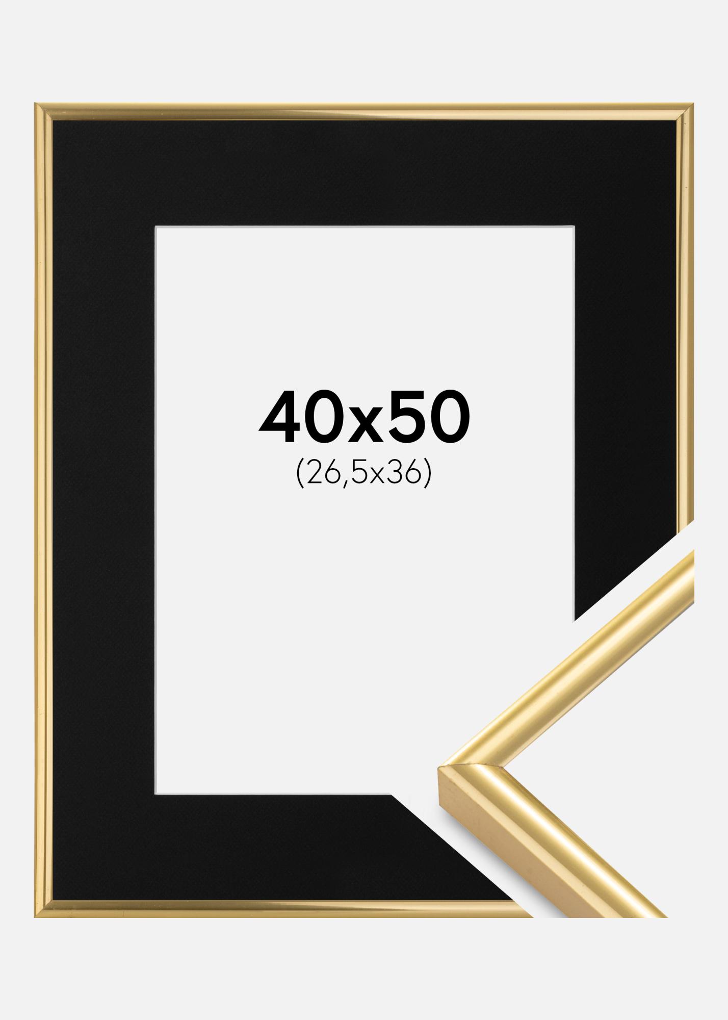 Moldura Victoria Dourado 40x50 cm - Passe-partout Preto 27,5x37 cm