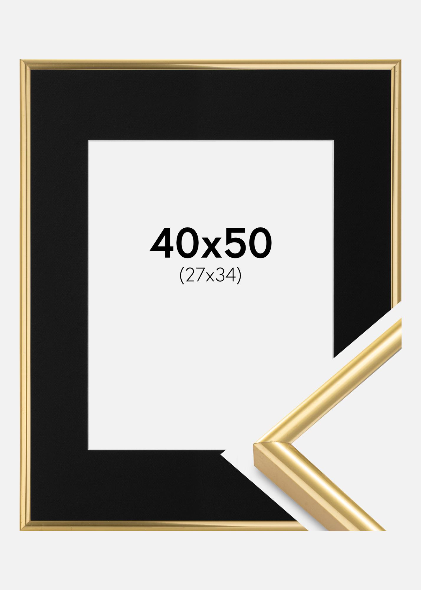 Moldura Victoria Dourado 40x50 cm - Passe-partout Preto 28x35 cm