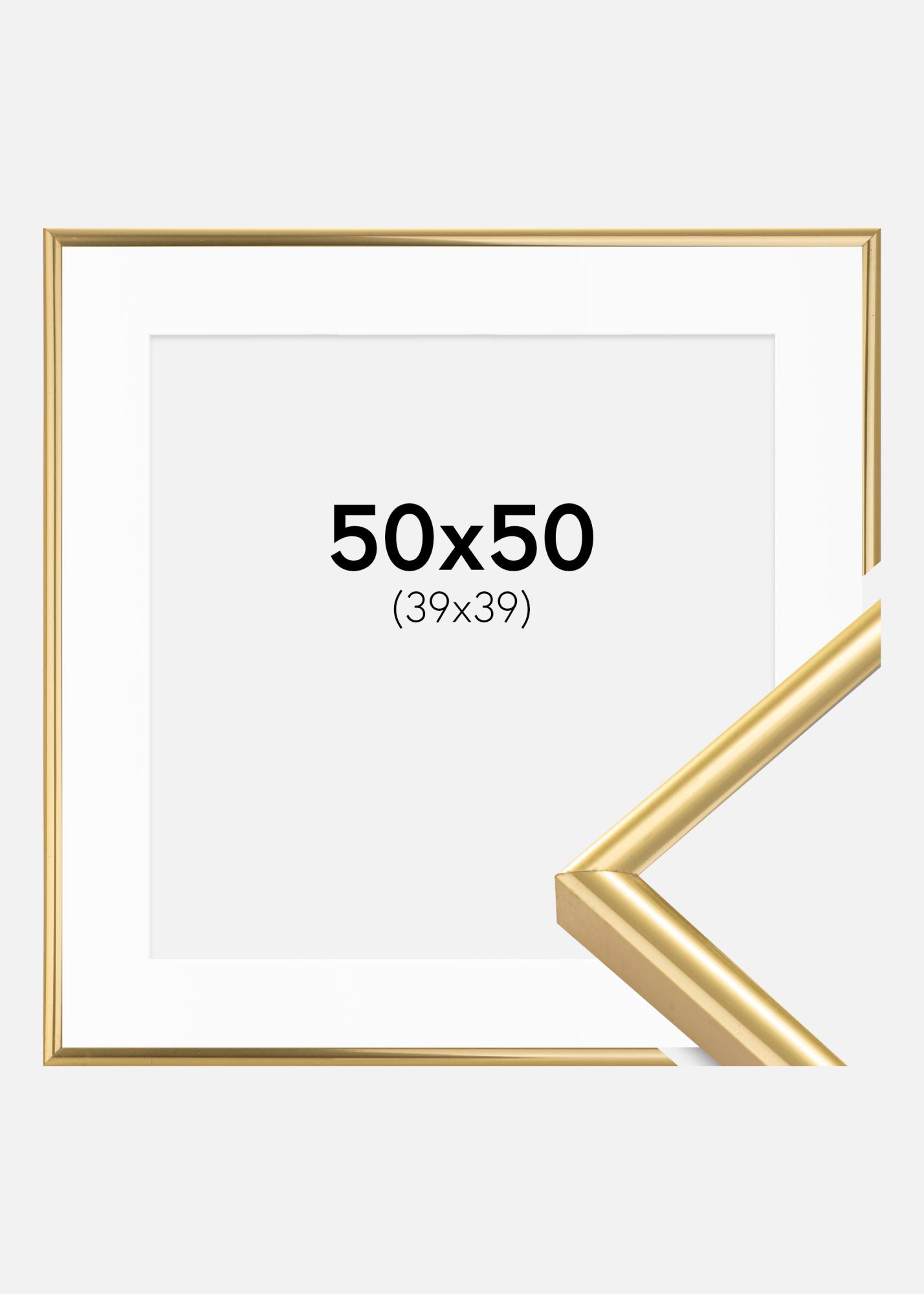 Moldura Victoria Dourado 50x50 cm - Passe-partout Branco 40x40 cm