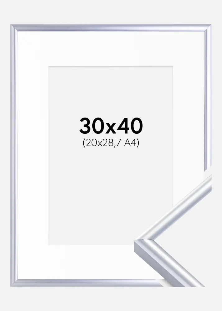 Moldura Victoria Prateado 30x40 cm - Passe-partout Branco 21x29,7 cm (A4)
