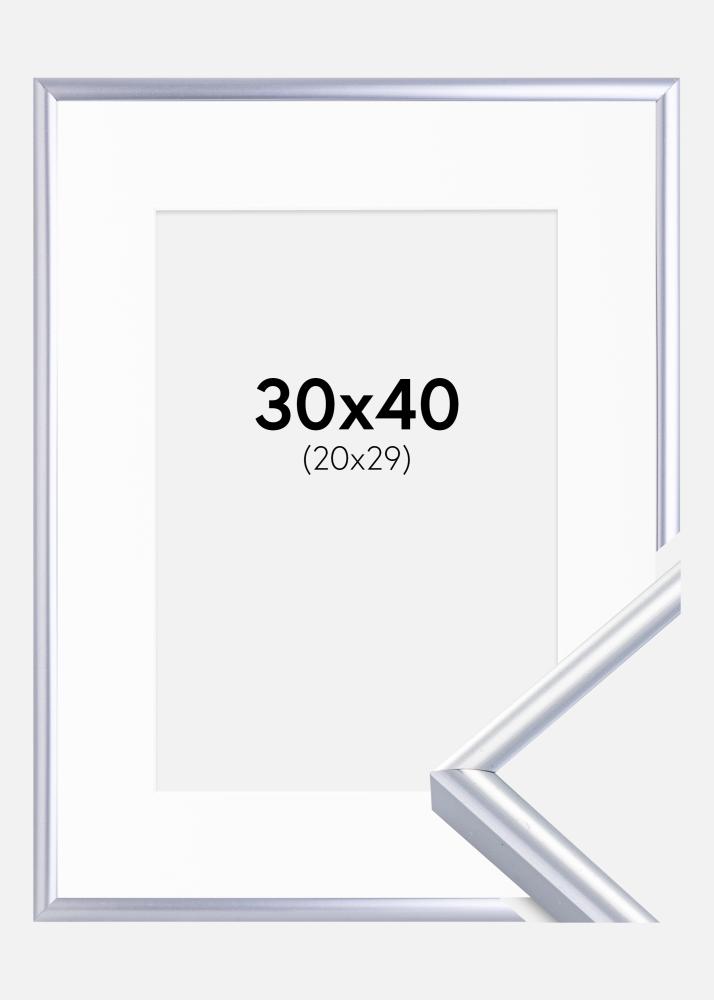 Moldura Victoria Prateado 30x40 cm - Passe-partout Branco 21x30 cm