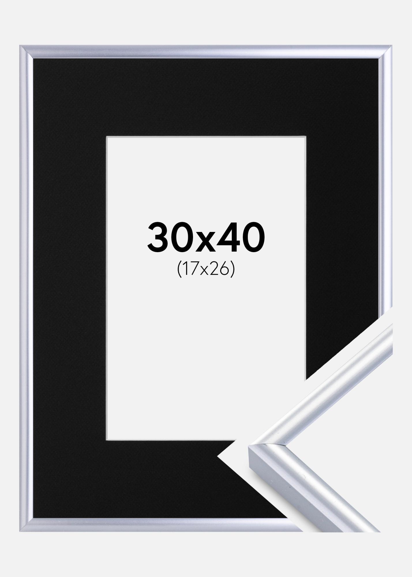 Moldura Victoria Prateado 30x40 cm - Passe-partout Preto 18x27 cm