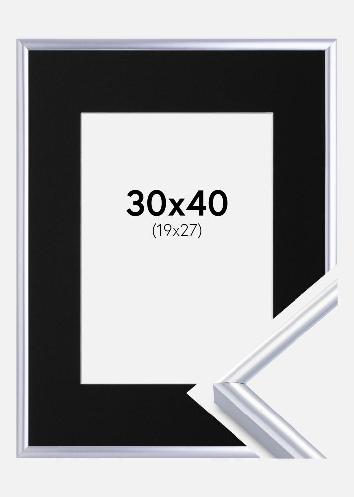 Moldura Victoria Prateado 30x40 cm - Passe-partout Preto 20x28 cm
