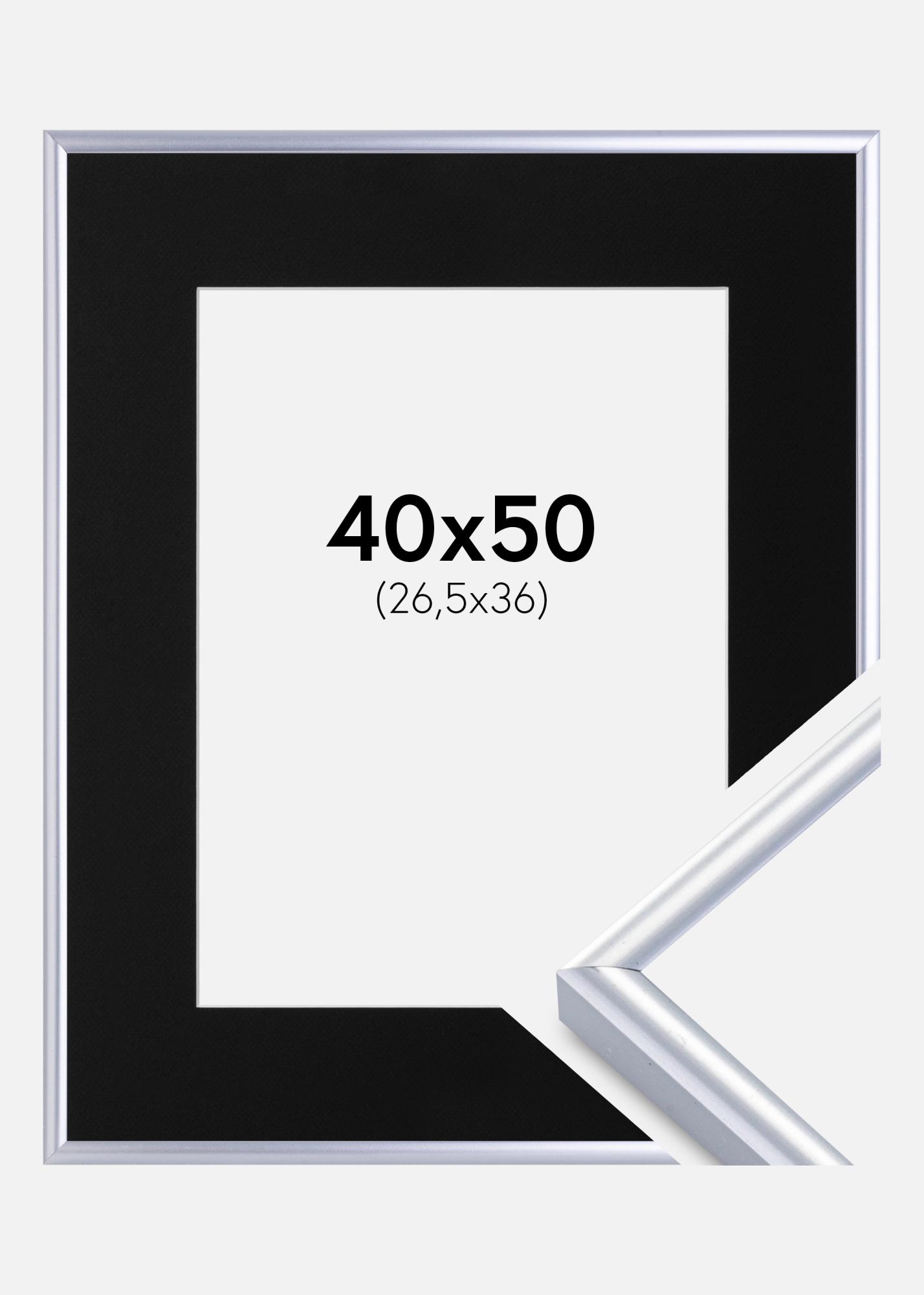 Moldura Victoria Prateado 40x50 cm - Passe-partout Preto 27,5x37 cm