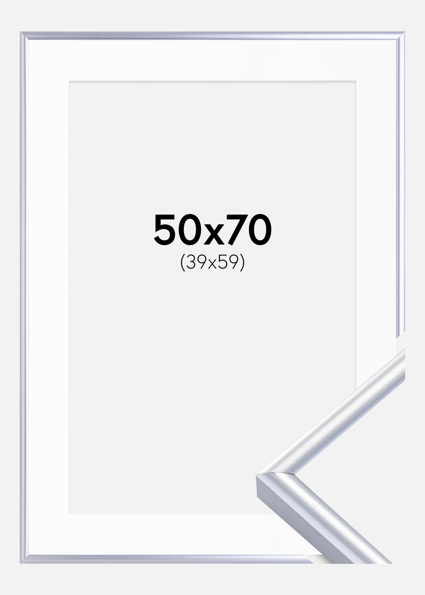 Moldura Victoria Prateado 50x70 cm - Passe-partout Branco 40x60 cm