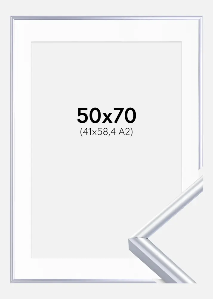 Moldura Victoria Prateado 50x70 cm - Passe-partout Branco 42x59,4 cm (A2)