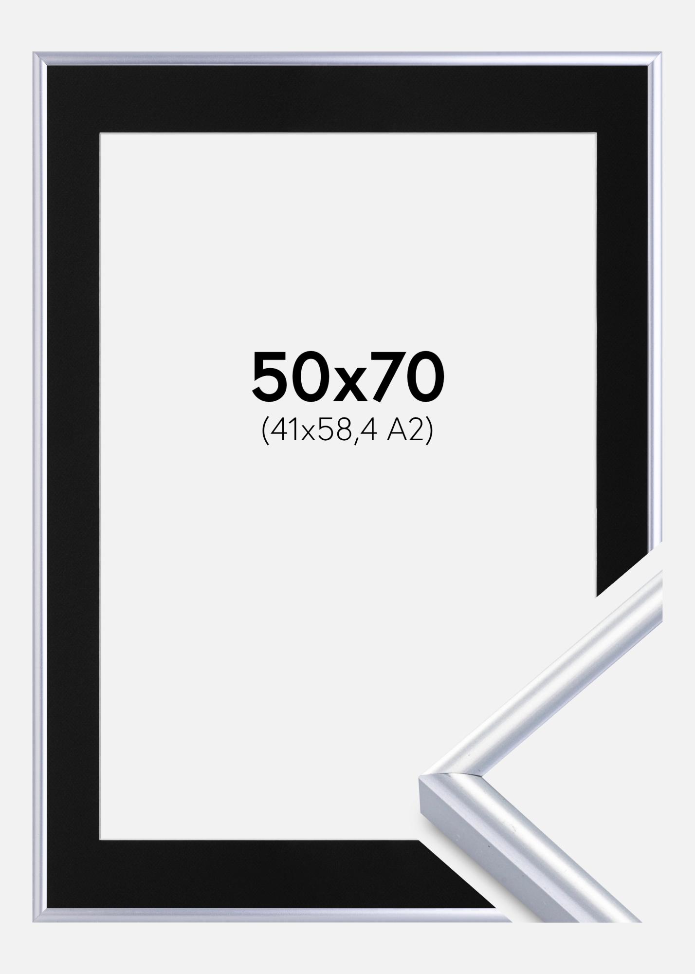 Moldura Victoria Prateado 50x70 cm - Passe-partout Preto 42x59,4 cm (A2)
