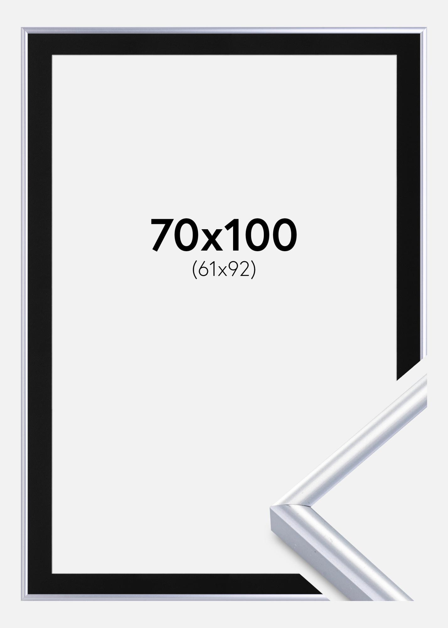 Moldura Victoria Prateado 70x100 cm - Passe-partout Preto 62x93 cm