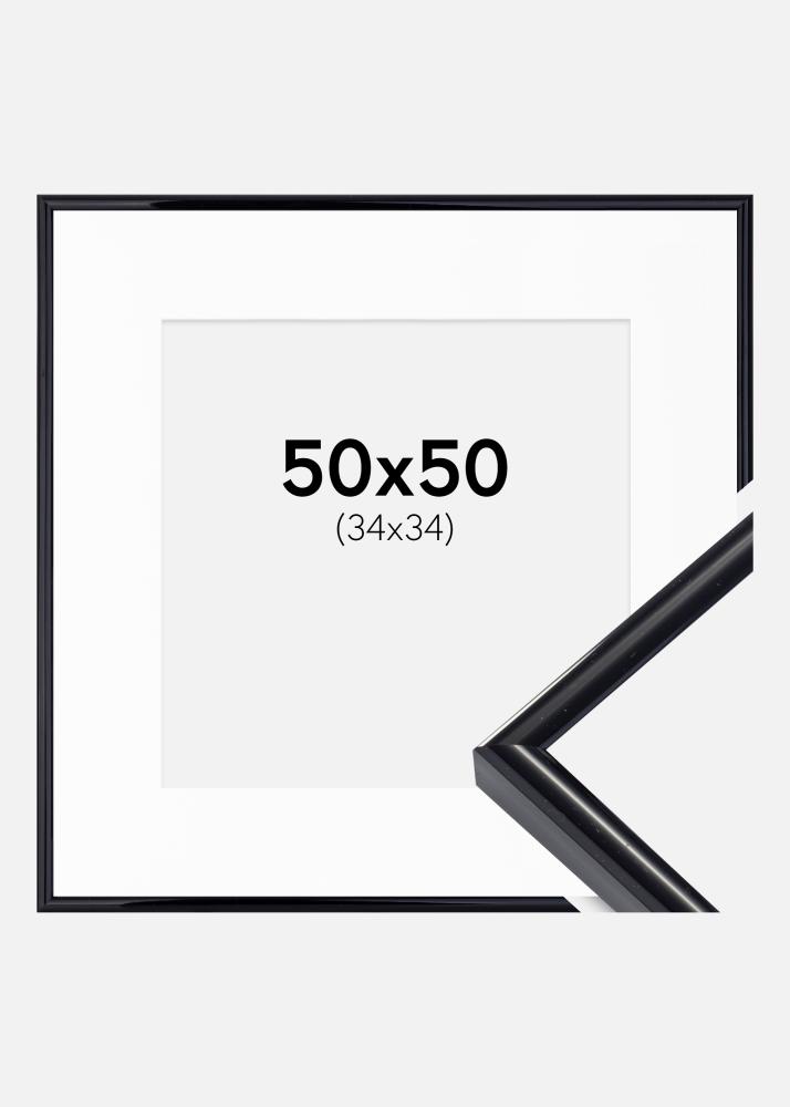 Moldura Victoria Preto 50x50 cm - Passe-partout Branco 35x35 cm