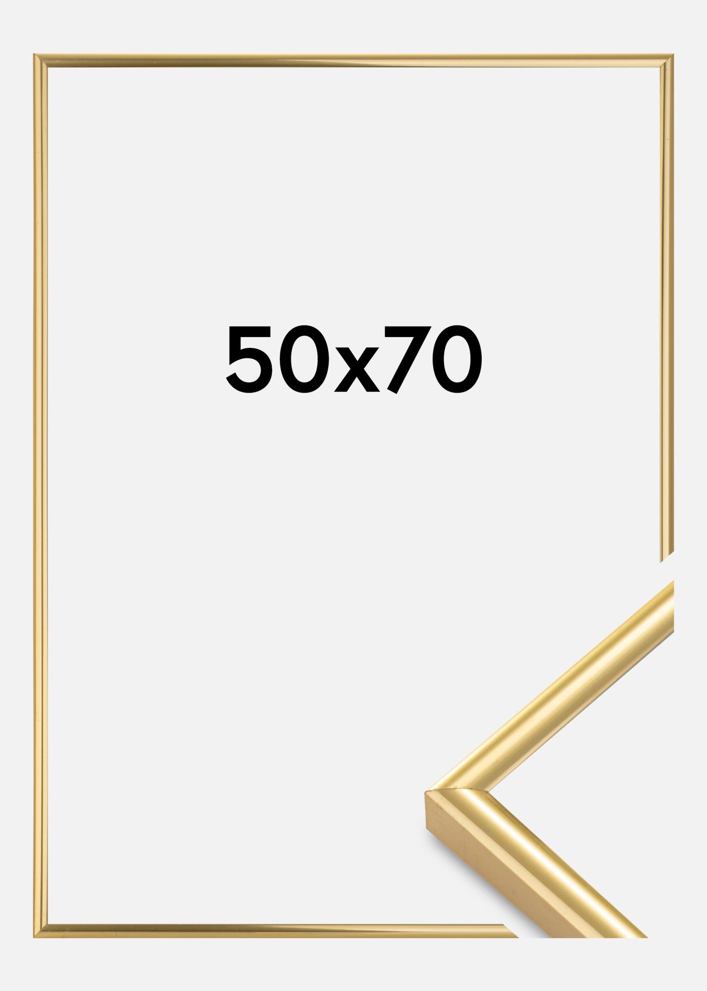 Dê às suas paredes um toque de elegância com este quadro dourado de 50x70 cm. Com o seu acabamento brilhante e design clássico, este porta-retrato irá transformar a sua foto ou obra de arte em um verdadeiro destaque. A largura do quadro é de 7 mm, proporcionando uma moldura fina e discreta para a sua imagem.