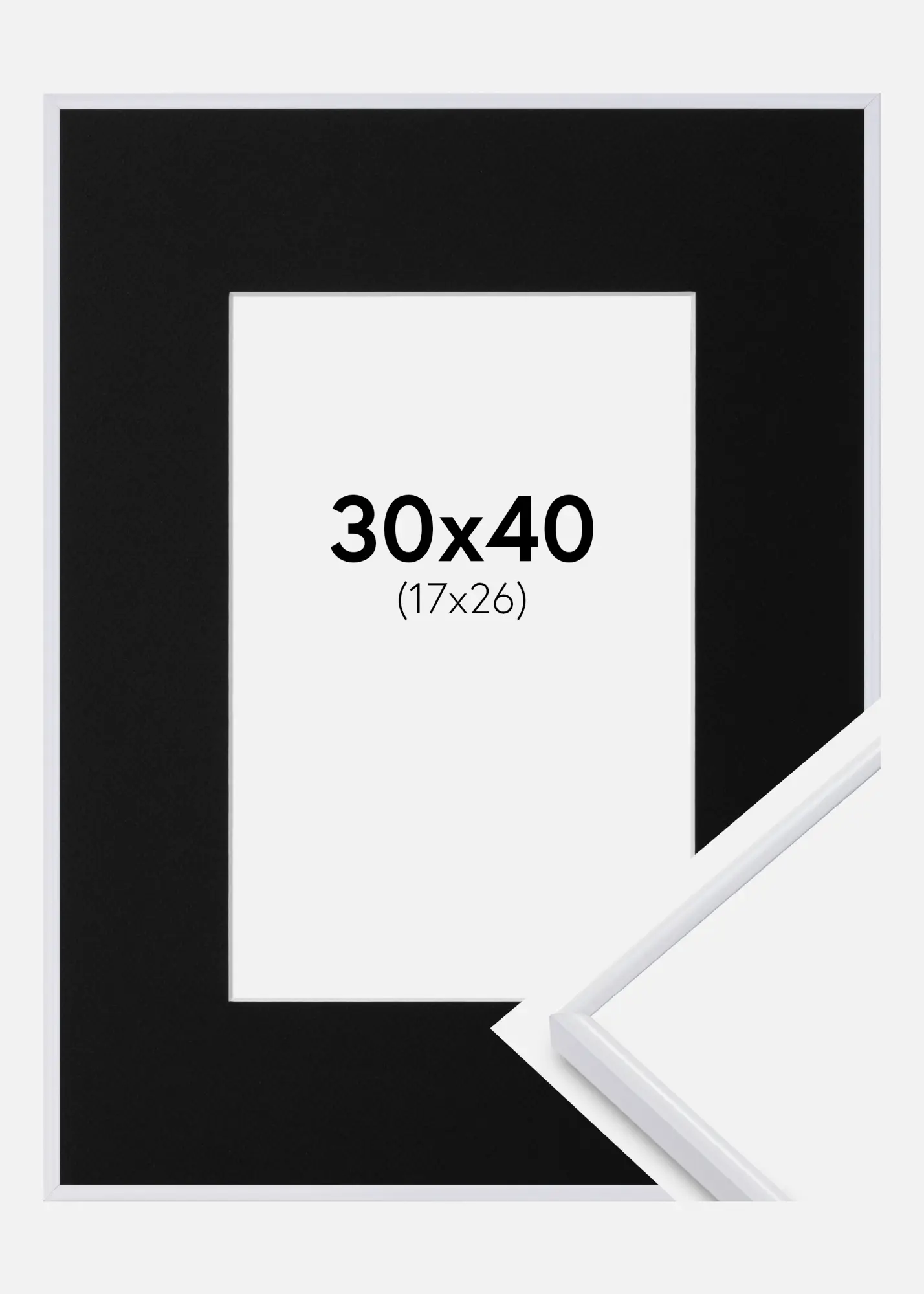 Moldura Visby Branco 30x40 cm - Passe-partout Preto 18x27 cm