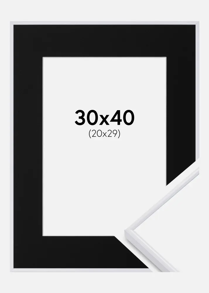 Moldura Visby Branco 30x40 cm - Passe-partout Preto 21x30 cm