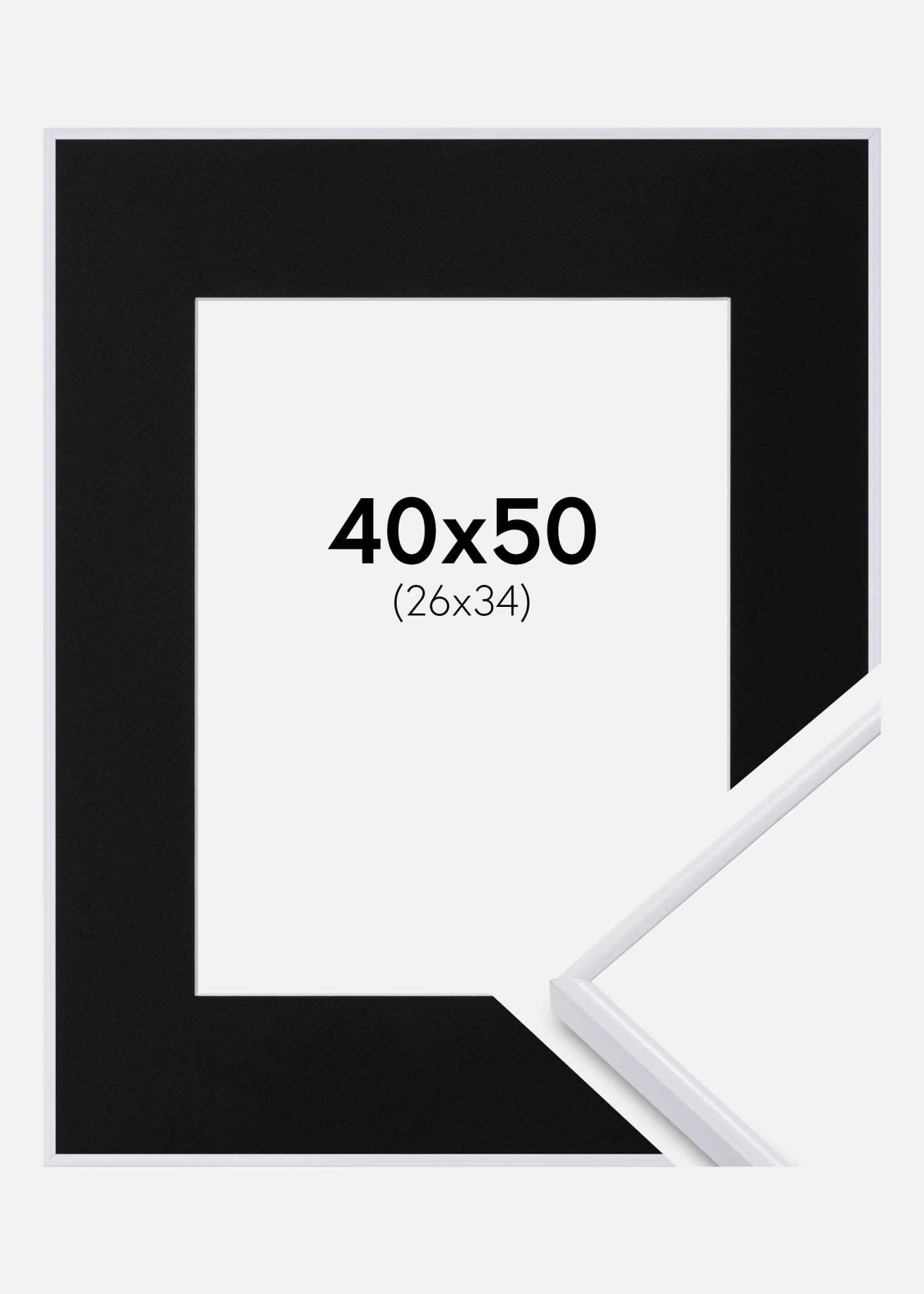 Moldura Visby Branco 40x50 cm - Passe-partout Preto 27x35 cm