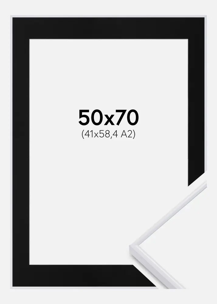 Moldura Visby Branco 50x70 cm - Passe-partout Preto 42x59,4 cm (A2)