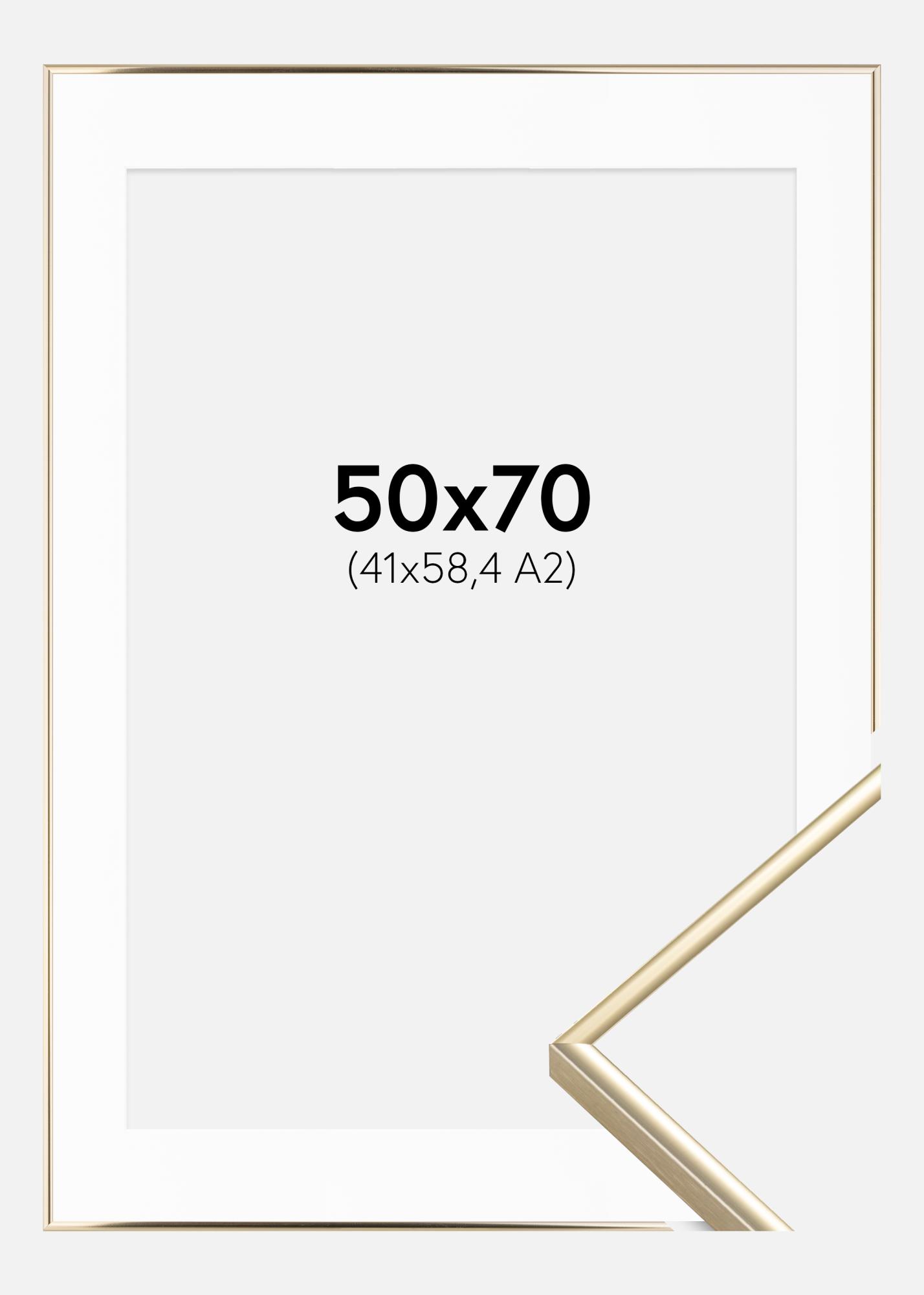 Moldura Visby Brilhante Dourado 50x70 cm - Passe-partout Branco 42x59,4 cm (A2)
