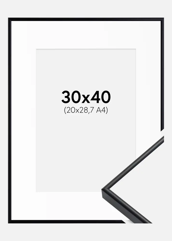 Moldura Visby Preto 30x40 cm - Passe-partout Branco 21x29,7 cm (A4)