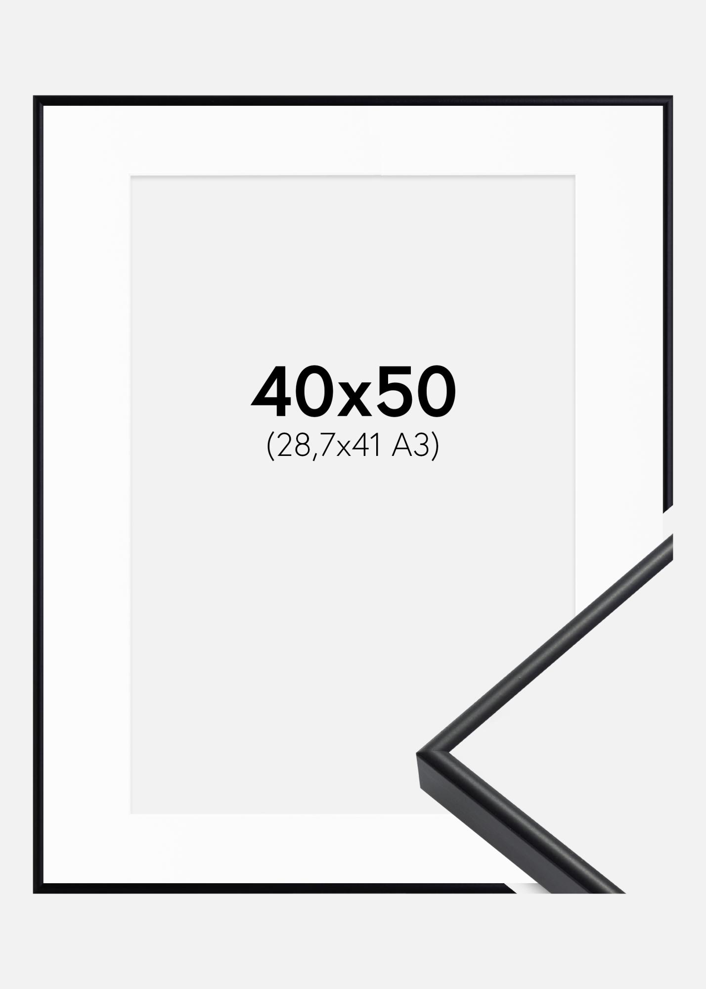 Moldura Visby Preto 40x50 cm - Passe-partout Branco 29,7x42 cm (A3)