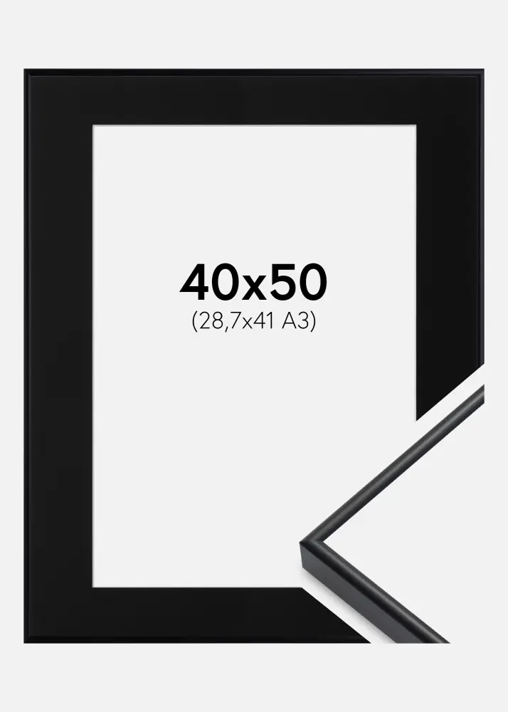 Moldura Visby Preto 40x50 cm - Passe-partout Preto 29,7x42 cm (A3)