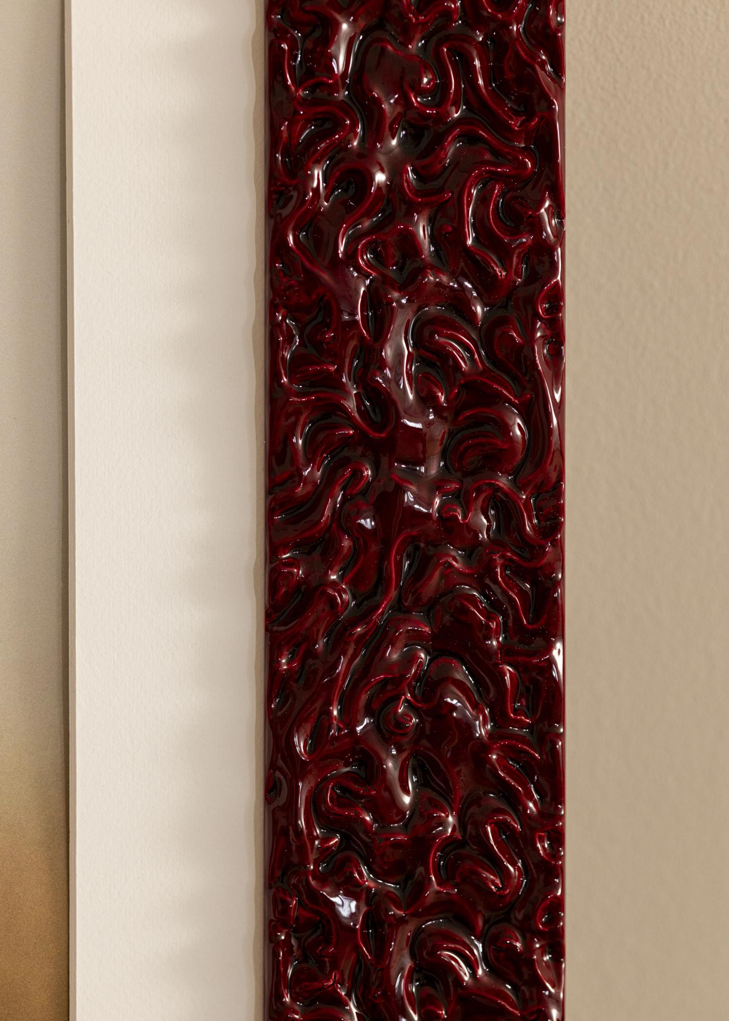 Westminster Vermelha é feita de pinho, conferindo-lhe tanto força quanto durabilidade. A superfície laqueada em um tom vermelho profundo destaca a estrutura orgânica única em relevo, proporcionando à moldura um toque dramático e moderno. Esta moldura é perfeita para criar uma impressão marcante em qualquer ambiente, seja em casa ou no escritório.
