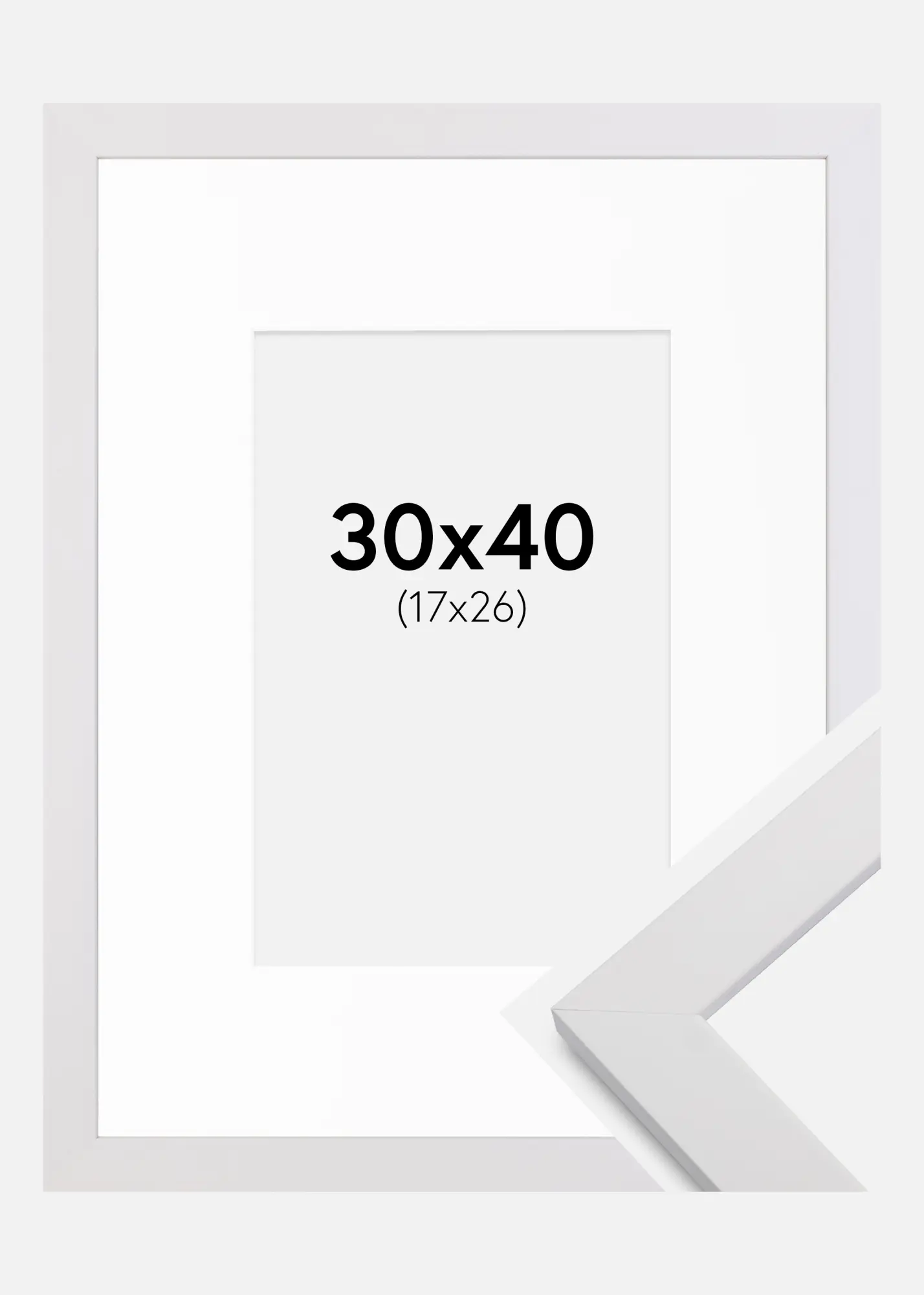 Moldura White Wood 30x40 cm - Passe-partout Branco 18x27 cm
