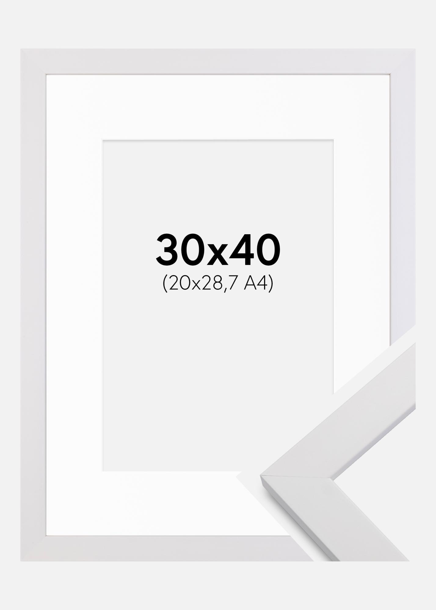 Moldura White Wood 30x40 cm - Passe-partout Branco 21x29,7 cm (A4)