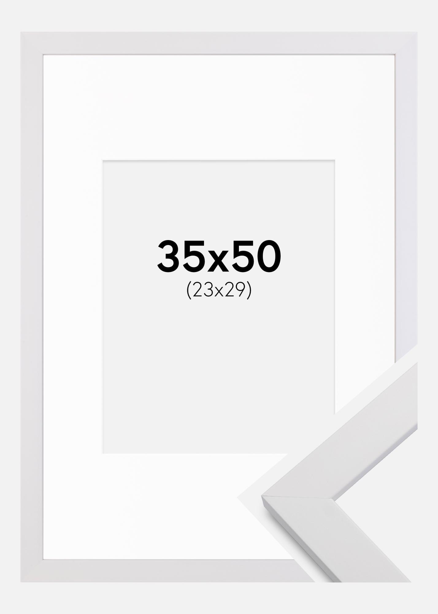 Moldura White Wood 35x50 cm - Passe-partout Branco 24x30 cm